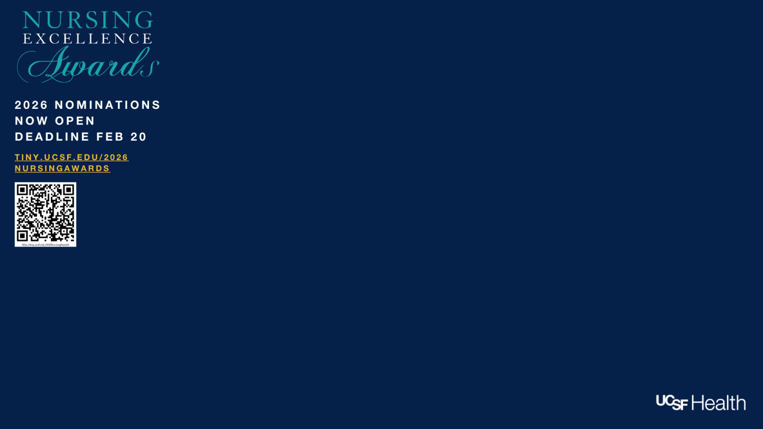The Nursing Excellence Awards are opportunities to recognize and celebrate actively engaged professional RN’s, LVN’s and clinical care colleagues who exemplify practice and merit recognition from peers and other professional colleagues at UCSF Health. This includes all campuses (e.g., Parnassus, Mission Bay, Mt. Zion, Oakland, Hyde and Stanyan, Langley Porter).